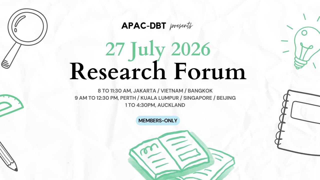 We are now inviting expressions of interest from APAC-DBT members who would like to present at the forum. APAC-DBT members can log in and complete the submission form.